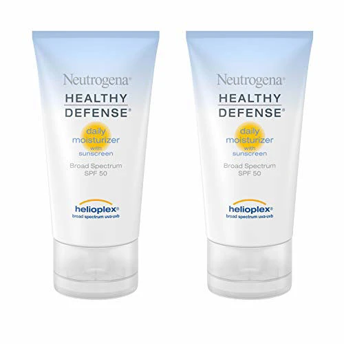 1 7-fluid ounces of Neutrogena Healthy Defense Daily Moisturizer with Broad Spectrum SPF 50 Sunscreen & Vitamin E provides all-day hydration and prevents sun damage to skin | Specially formulated with antioxidants and vitamin E, it helps prevent the signs of premature skin aging, including wrinkles, sagging and dark spots | Daily moisturizer is made with unique Helioplex Broad Spectrum SPF 50 Sunscreen which helps protect skin against damaging UVA/UVB rays SPF 50 products help protect against approximately 98% of sunburning UVB rays | The lightweight, non-greasy formula of this hypoallergenic moisturizer absorbs quickly and is both allergy-tested and dermatologist-tested | For best results, smooth liberally on face and neck every morning after cleansing Try this #1 Derm Recommended platform for sensitive skin for at-home skin care
