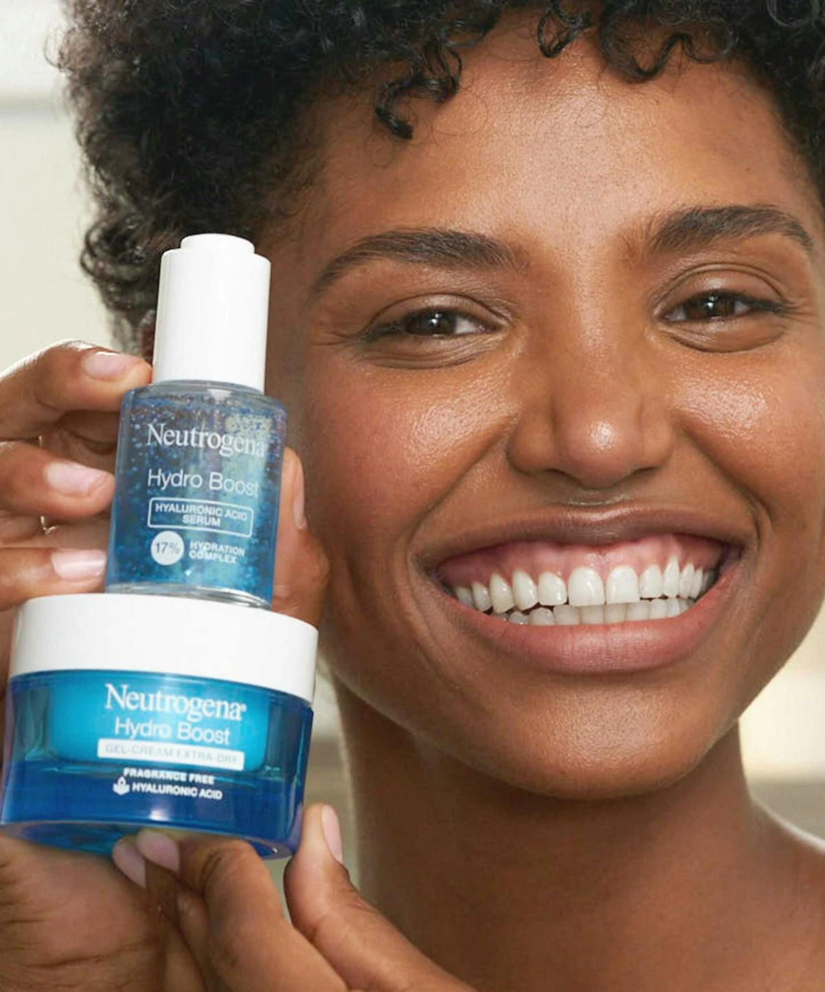 For 3X the hydrating power,* follow your serum with Neutrogena® Hydro Boost Gel-Cream Extra-Dry. This fragrance free daily moisturizer glides over skin with its lightweight formula. Plus, it’s clinically proven to strengthen the skin’s moisture barrier and hydrate for 48 hours. Pair this duo together to lock in lasting hydration for healthy, glowing skin.