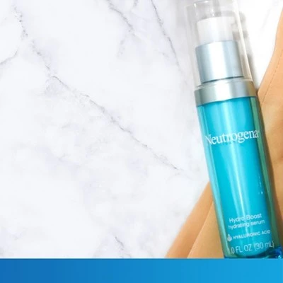 - Bottle of Neutrogena Hydro Boost Hydrating Hyaluronic Acid Serum for glowing, hydrated skin