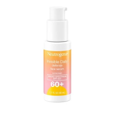 - Neutrogena Invisible Daily Defense Face Sunscreen + Hydrating Serum with broad spectrum SPF 60+