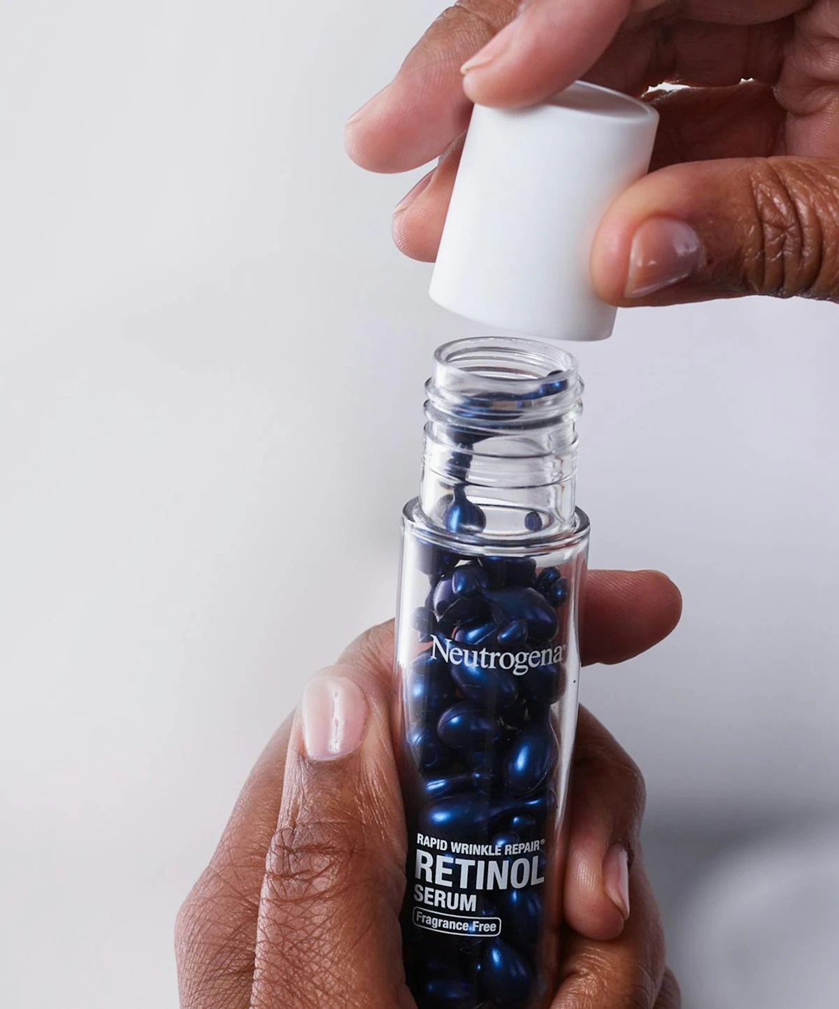 Reduce the look of fine lines, wrinkles and dullness and improve skin elasticity with Neutrogena Rapid Wrinkle Repair® Retinol Face Serum Capsules. Each anti-aging serum capsule contains a fresh dose of pure retinol, a dermatologist-proven form of vitamin A, and leaves skin feeling hydrated, nourished and supple.