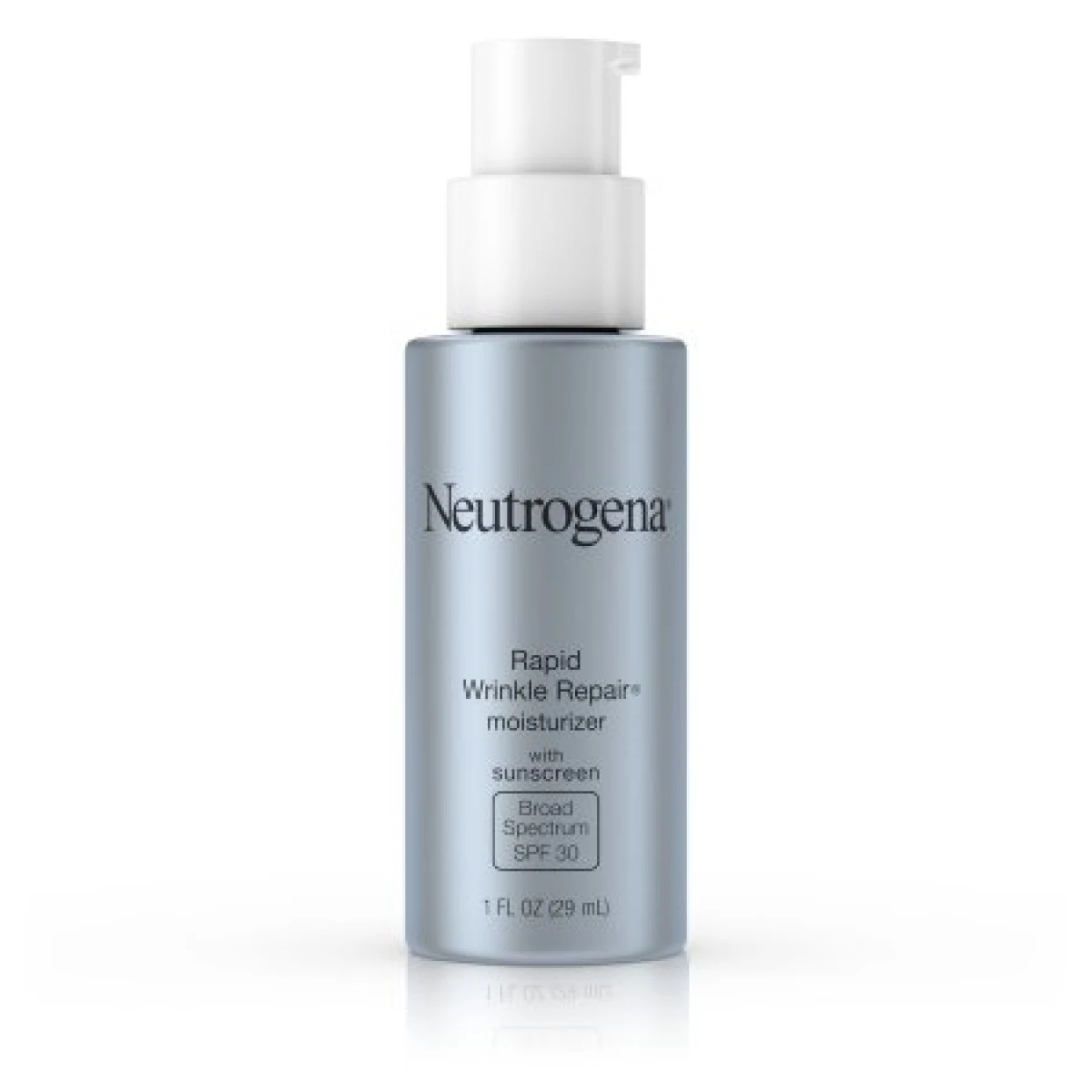 Helps hydrate and protect your skin while reducing the look of wrinkles with Neutrogena Rapid Wrinkle Repair Daily Face Moisturizer with Broad Spectrum SPF 30 Sunscreen. This fast-acting facial moisturizer visibly reduces the look of stubborn wrinkles–including crow’s feet and cheek wrinkles. It also helps reduce the look of fine lines and texture and brightens and evens skin tone. In a clinical trial, women experienced noticeable results in just one week of use. This formula contains accelerated Retinol SA, a unique combination of ingredients and is clinically proven to leave skin feeling smoother and looking healthier. Formula with Retinol SA continuously renews the look of skin, helping to smooth wrinkles fast and diminish the look of age spots. Glucose Complex, a Retinol SA booster, helps accelerate the skin’s surface activity for fast results. Formula with hyaluronic acid adds line-plumping moisture to help hydrate, replenish, and rejuvenate the look of skin. This super-charged formula is combined with Broad Spectrum SPF 30 for daily sun protection.