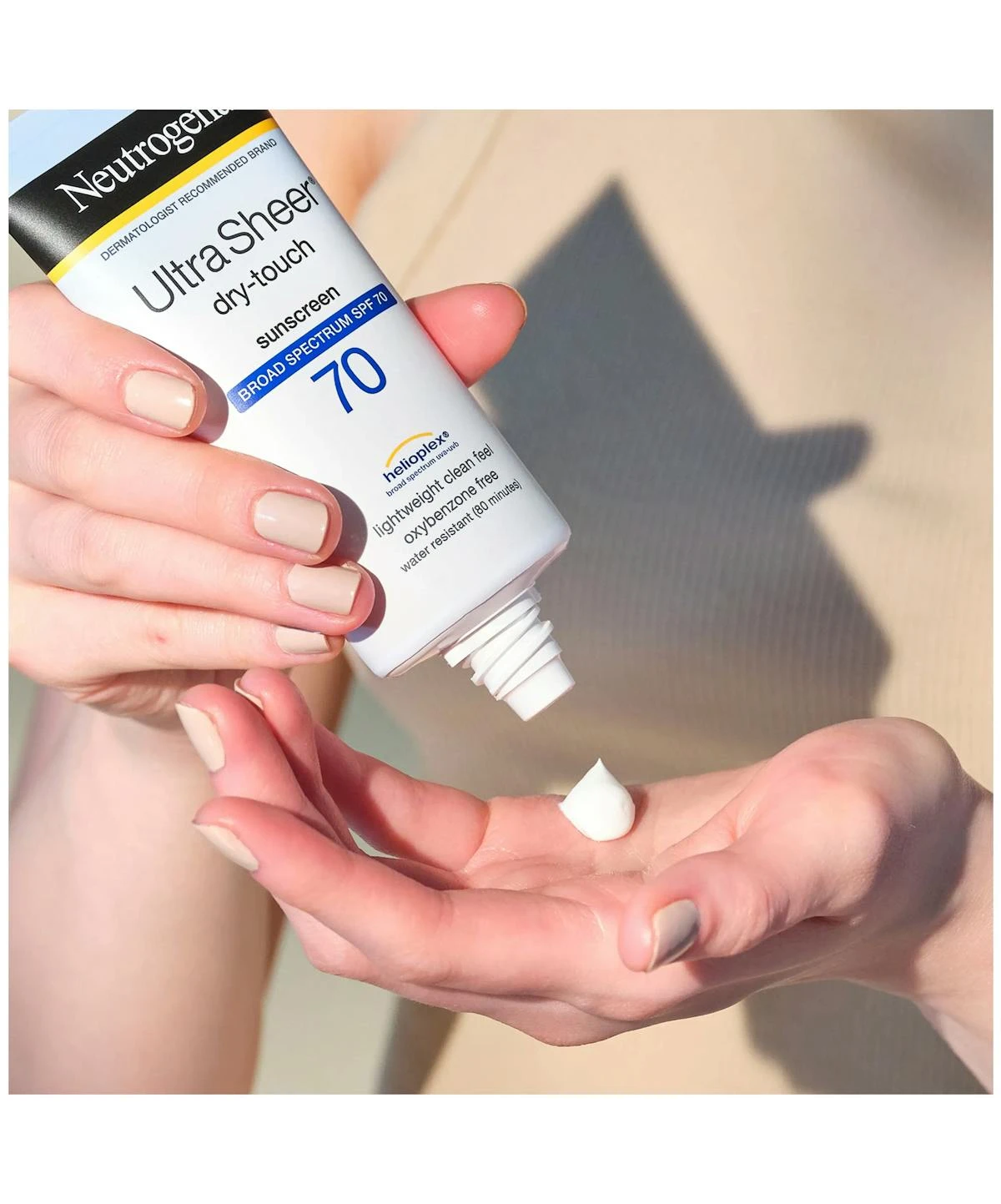 Protect your skin with our SPF 70 Ultra Sheer® Dry-Touch Sunscreen, defending your skin from harmful UV rays without the signature heaviness and grease of other sunscreens. Our Dry-Touch technology makes it lightweight to apply with an invisible finish, while our unique HELIOPLEX® Technology formula offers superior protection from both harmful UVA and UVB rays.